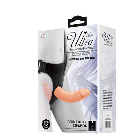 Страпон с 2 насадками на поясе. Эластичный пояс хорошо садится по фигуре. Внутренний отросток не только помогает удерживать игрушку на месте, но и дополнительно доставляет удовольствие. Длина вагинального пробки - 10,2 см., диаметр - 2,8 см.