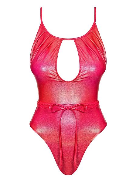 Этот купальник пробудит в вас сексуальность и заставит почувствовать себя богиней! Соблазнительный коралловый цвет превратит ваш отпуск в пикантное и захватывающее приключение. Лямки, перекрещивающиеся на спине. Сексуальный вырез на груди. Подчеркивающий талию фасон. Глянцевый, гладкий, эластичный материал.