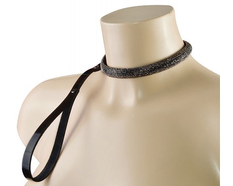 [NAME] => Эффектный сверкающий ошейник с поводком  Гламур
