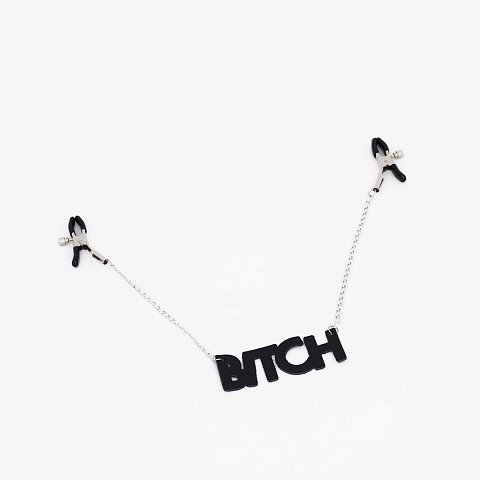 Зажимы оснащены мягкими резиновыми наконечниками , которые обеспечивают комфортное сжатие сосков, не травмируя кожу. Между собой зажимы соединены металлической цепочкой , на которой эффектно расположена надпись BITCH , добавляющая изделию игривости и интриги. Сила сжатия регулируется с помощью подвижного колечка на зубцах , что позволяет настроить интенсивность воздействия под свои предпочтения.