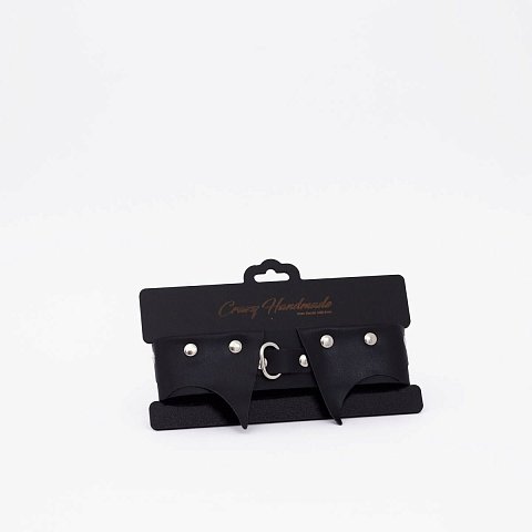 Изделие состоит из двух слоев натуральной кожи : основной слой – лицевая часть, и подкладка красного цвета с мягким наполнителем , которая обеспечивает комфортное и безопасное использование, не натирая кожу. Красная декоративная строчка добавляет изделию стильный акцент, подчеркивая его элегантность. Особый шарм оковам придает элемент в виде трезубца , который вместе с игрой цветов и фактур пробуждает самые смелые эротические фантазии.
