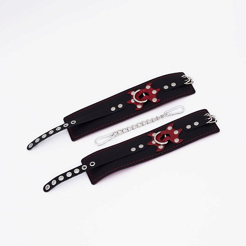 Красная декоративная строчка добавляет изделию стильный акцент, подчеркивая его элегантность. Особый шарм наручникам придает элемент в виде трезубца , который вместе с игрой цветов и фактур пробуждает самые смелые эротические фантазии.