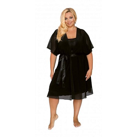 Пеньюар, с короткими рукавами, верх из вуали. Атласный пояс в комплекте.