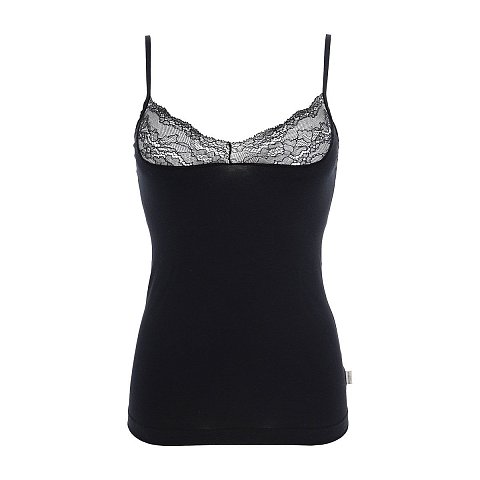 Топ на тонких бретелях из мягкого эластичного хлопка тянущегося в две стороны. Квадратный вырез отделан кружевом.