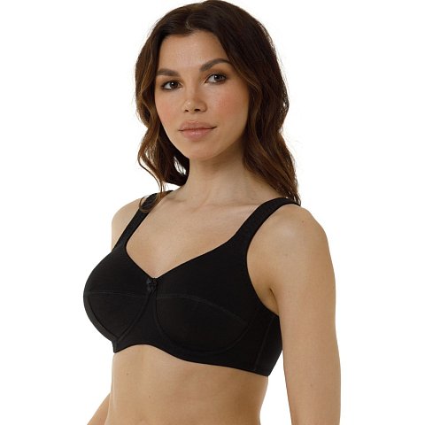 Бюстгальтер без каркасов с мягкой чашкой. Чашки Т-образного членения высоко приподымают грудь и создают округлую наполненную форму. Усиленная бретель снимает нагрузку с плечевого пояса. Широкий стан плотно облегает тело и обеспечивает стабильную комфортную посадку бюстгальтера на фигуре.