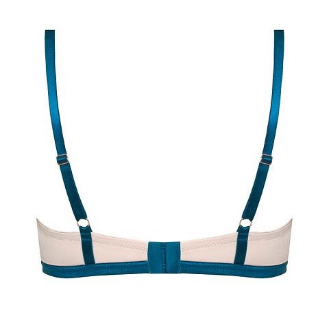 Бюстгальтер Eleni: чашки формованные, с несъёмным силиконовым пуш-апом, на косточках, с дополнительными боковыми поддержками, внешняя сторона покрыта кружевом. Бретельки контрастного цвета пришиты, регулируются по длине. На спине застёжка на удлинитель, количество крючков в ряду застёжки увеличивается пропорционально размеру бюстгальтера.