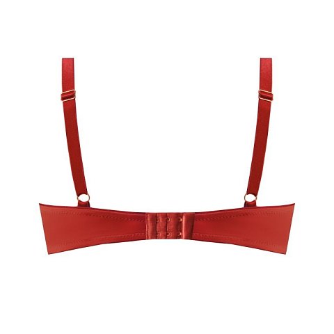 Бюстгальтер Clarisa push up с формованными поролоновыми чашками телесного цвета без косточек, с дополнительными боковыми поддержками, внешняя сторона покрыта кружевом, спинка из трикотажа. Бретельки не отстёгиваются, регулируются по длине, фурнитура металлическая цвета меди. На спине застёжка на удлинитель, количество крючков в ряду застёжки увеличивается пропорционально размеру бюстгальтера.