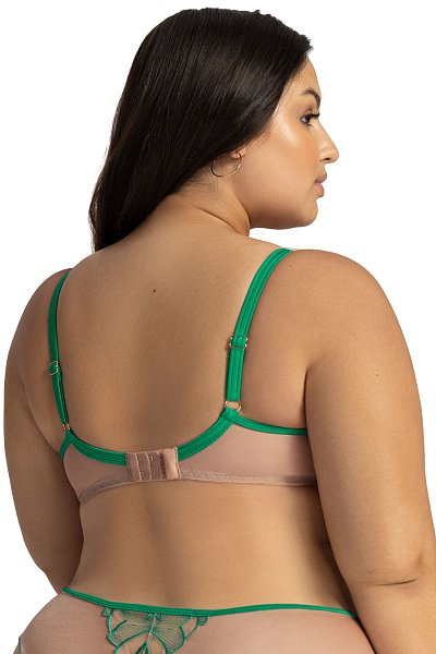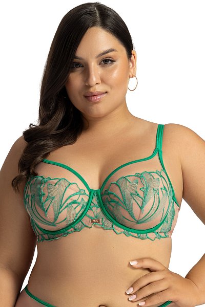 Бюстгальтер на каркасах с полудублированной чашкой. Чашки овальной формы с диагональным членением и боковым подрезом создают округлую наполненную форму и обеспечивают надёжную, высокую и комфортную поддержку груди. Усиленная бретель снимает нагрузку с плечевого пояса. Широкий стан с боковыми упругими пластинами плотно облегает тело и обеспечивает стабильную комфортную посадку бюстгальтера на фигуре.