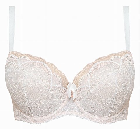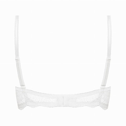 Бюстгальтер на косточках, с боковыми поддержками, чашки шитые, на тонком поролоне, с кармашками для съёмных пуш-ап вкладышей, внутренняя сторона проложена хлопковым трикотажем, внешняя покрыта кружевом. На спине застёжка на удлинитель, количество крючков увеличивается пропорционально размеру.