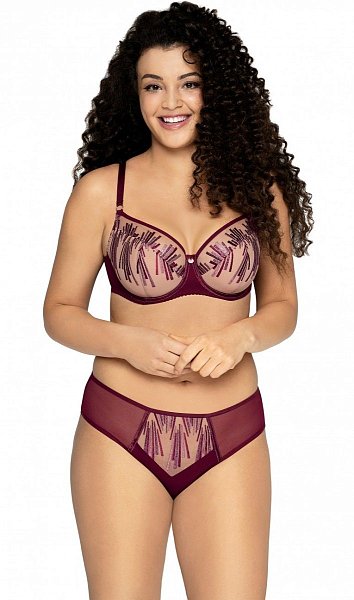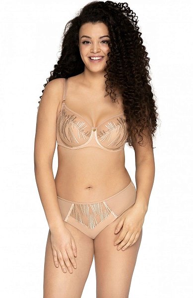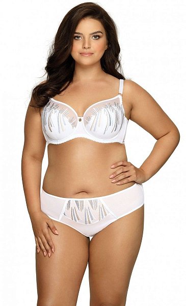 Бюстгальтер на косточках, с боковыми поддержками, чашки шитые, нижняя часть на тонком поролоне, внутренняя сторона прошита хлопковым трикотажем, внешняя из тонкой сетки с вышивкой. Бретельки не отстёгиваются, регулируются по длине, на спине застёжка - удлинитель.