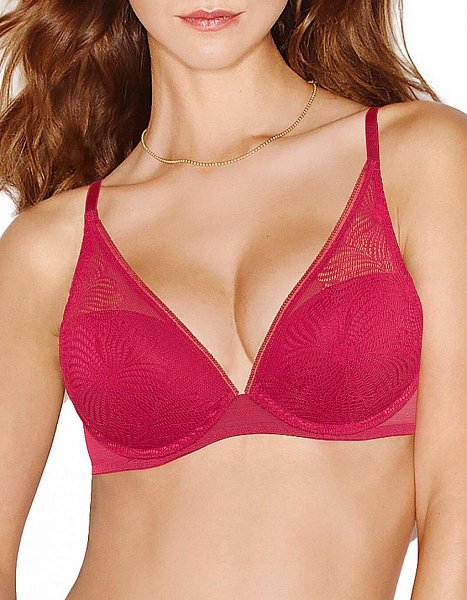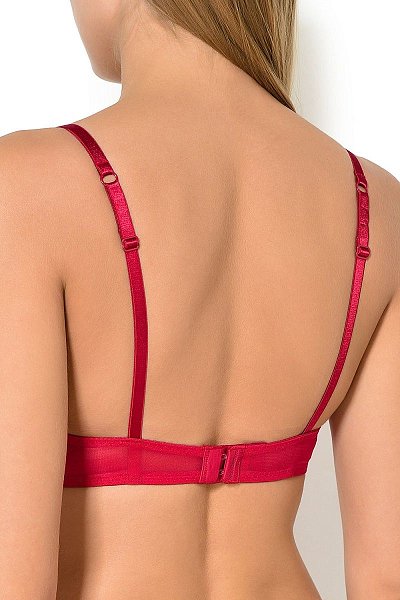 Украсьте свое декольте бюстгальтером Padded Triangle Bra с треугольными чашками! Классическая конструкция с гладкими формованными чашками декорирована треугольными кружевными полупрозрачными вставками, плавно переходящими в тонкие бретели. Бретели регулируются сзади. Застежка на два крючка.