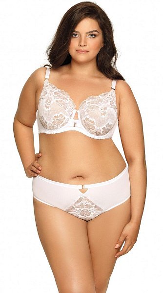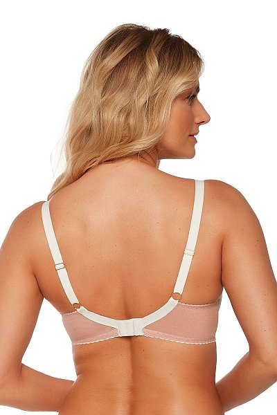 Бюстгальтер на косточках, с боковыми поддержками, чашки шитые, нижняя часть на тонком поролоне, внутренняя сторона прошита хлопковым трикотажем, внешняя из кружева. Бретельки не отстёгиваются, регулируются по длине, на спине застёжка - удлинитель.
