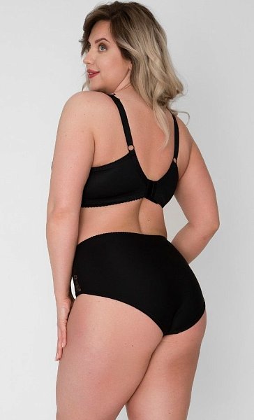 Бюстгальтер-топ выполнен с мягкими чашечками без косточек, чашки шитые из кружевного полотна, продублированы эластичной тканью в тон, под грудью пришита широкая эластичная резинка, спинка из стабилизирующей сетки, Бретельки регулируются по длине, не отстёгиваются, с подвижной фурнитурой-крючком для соединения бретелей на спине. На спине застёжка на удлинитель на 2 и 3 крюка. У данной модели довольно тугой пояс. Рекомендуем использовать удлинитель пояса бюстгальтера на первое время либо выбирать следующий за «своим» размер, с поясом длиннее.