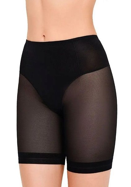 Трусы-шорты с завышенной линией талии. Выполнены из микрофибры по форме трусиков-стринг, а в области бедер и ног из сетки с бесшовным краем. За счет плоских швов невидимы даже под тонким трикотажем. Ластовица выполнена из уникального хлопкового материала.